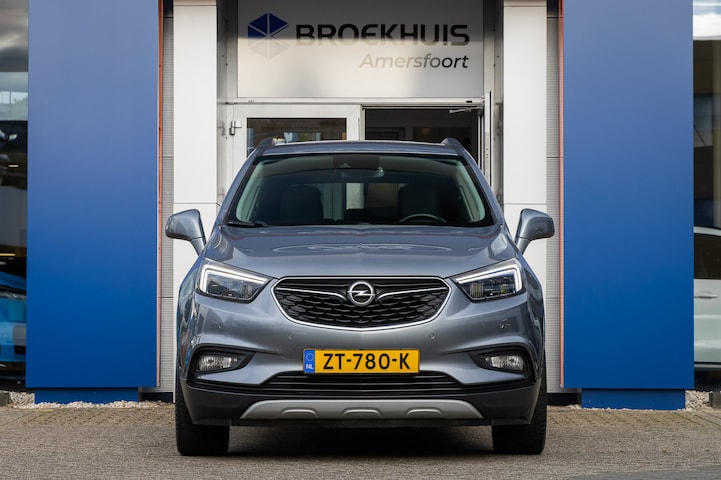 Wat Opel bedoelt met 'De toekomst is voor iedereen'? Neem de proef op de som bij deze fraaie Opel Mokka X. Met zijn benzinemotor en automatische transmissie is dit een prima auto voor nog vele kilometers. Deze Opel Mokka X is luxe afgewerkt. Kijk maar naar het lederen interieur! Behaaglijk onderweg zijn? Als bestuurder geniet u van de verwarmbare voorstoelen. Net als uw bijrijder! Met de comfortstoelen heeft u de zekerheid: elke rit fit door de juiste zit. Wat een licht geeft dat glazen elektrisch bedienbare panoramadak. Als het buiten koud wordt, voelt zo'n verwarmd stuurwiel heerlijk aan. Bij de uitrusting van deze auto horen onder meer 18 inch lichtmetalen velgen, LED koplampen, extra getint glas, in delen neerklapbare achterbank, LED-achterlichten en snelheidsafhankelijke stuurbekrachtiging. Ongelukken of parkeerschade? Dat gebeurt u niet meer, met de achteruitrijcamera. Altijd een deskundige gids aan boord, dankzij het full map navigatiesysteem. Tot de standaard uitrusting van deze auto hoort ook electronic climate control. Met de audiobediening op het stuur regelt u de geluidsinstallatie gemakkelijk en veilig. Met de DAB-ontvanger heeft u keuze uit talloze digitale radiozenders met de allerhoogste geluidskwaliteit. Natuurlijk behoren regensensor, cruise control, keyless entry, automatisch dimmende binnenspiegel en boordcomputer ook tot de uitrusting van deze complete auto. Zoals u mag verwachten van deze Opel Mokka X is hij uitgerust met een reeks aan actieve veiligheidssystemen. Onderweg fungeert de verkeersbord-detectie als het ware als uw bijrijder en attendeert u op de verkeersborden langs de weg. Met het Lane-keeping systeem komt u nooit per ongeluk buiten de rijstrook. Het forward collision warning-systeem is constant alert en detecteert via sensor de afstand tot voorliggers. Wordt die te klein, dan volgt een automatische waarschuwing. Met voorzieningen als hill hold functie en bandenspanningcontrolesysteem, bent u altijd veilig onderweg. Klinkt dit allemaal aantrekkelijk? Maak dan een afspraak met onze verkoper!