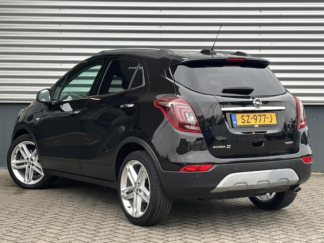 U kent Opel natuurlijk van de slogan 'De toekomst is voor iedereen'. Dit exemplaar laat uitstekend zien wat ze daarmee bedoelen. In deze auto vindt u een benzinemotor en een automatische transmissie. Eén blik naar binnen bewijst het al: pure klasse, onder meer dankzij het lederen interieur. Voorin is het 's winters genieten met de verwarmbare voorstoelen voor zowel bestuurder als bijrijder. De comfortstoelen van deze Opel Mokka X staan bekend om hun goede zithouding. Licht, luxe en gemak komen samen in de vorm van het elektrische bediende glazen panoramadak. Opwarmen in koude dagen? Pak het verwarmd stuurwiel met beide handen aan! Xenonverlichting staat borg voor helderwit licht en een krachtige lichtbundel. De uitmonstering van deze auto wordt gecompleteerd door onder meer 19 inch lichtmetalen velgen, LED koplampen, extra getint glas, in delen neerklapbare achterbank, LED-achterlichten en snelheidsafhankelijke stuurbekrachtiging.