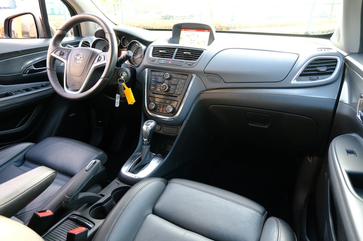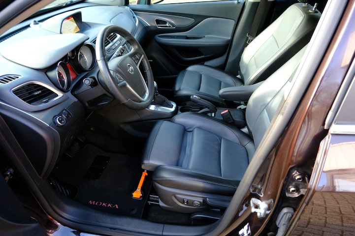 Innovatieve techniek onder handbereik. Dat beloven ze bij Opel onder de slogan 'De toekomst is voor iedereen'. En ze maken het waar ook. De aandrijving van deze Opel wordt verzorgd door een viercilinder motor en een automatische transmissie. De lederen bekleding geeft het interieur een rijke en luxe uitstraling. Ga samen met uw bijrijder lekker zitten in de verwarmbare voorstoelen. De comfortstoelen van deze Opel Mokka staan bekend om zijn goede zithouding. Licht en lucht komen onbelemmerd binnen als het elektrisch bediende glazen panoramadak met één druk op de knop wordt geopend. Xenonverlichting staat borg voor helderwit licht en een krachtige lichtbundel. Tot de uitrusting van deze Opel behoren ook 17 inch lichtmetalen velgen, warmtewerend glas, in delen neerklapbare achterbank en snelheidsafhankelijke stuurbekrachtiging.