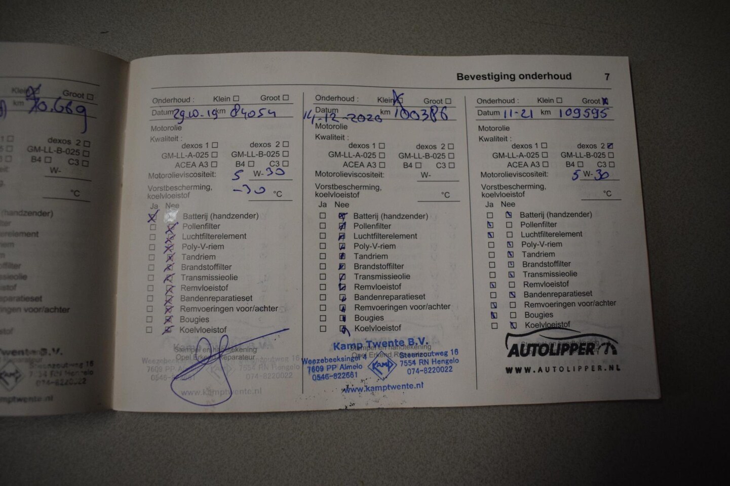 | APK | Bij aflevering |
