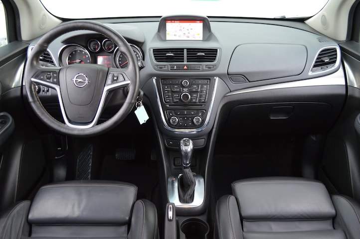 Luxe Opel Mokka van bouwjaar 2013. O.a. voorzien van; elektrische ramen, elektrisch verstel & inklapbare buitenspiegels, climate control, cruise control, lederen bekleding, stoelverwarming, stuurwielverwarming, navigatiesysteem, achteruitrijcamera, schuif/kantel dak, lichtmetalen velgen en een trekhaak.