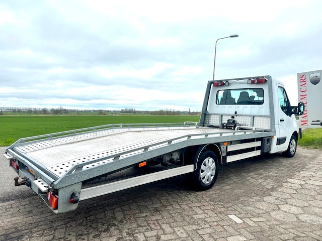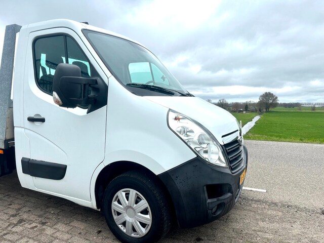 Super mooie en nette witte Opel Movano 2.3 CDTI L3 3-Zits 6Bak oprijwagen/autotransporter met NAP en Airco, Boordcomputer, Mistlampen, Cruise control, Elek.ramen, Lier met afstandbediening, veren met lucht drukgas,