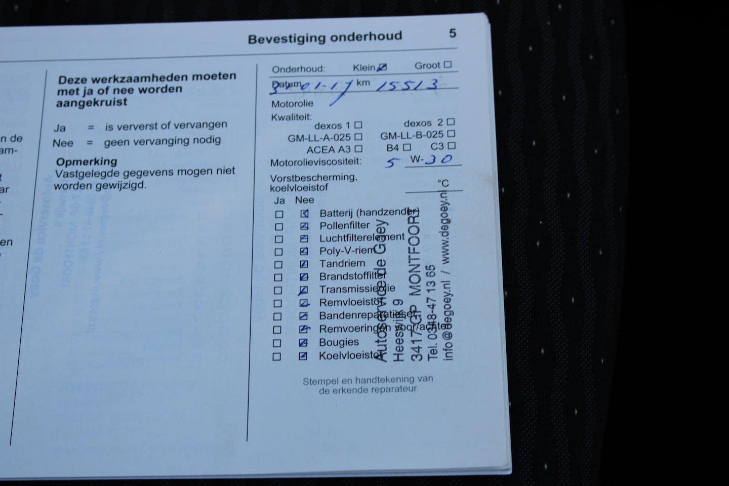 | APK | Bij aflevering |