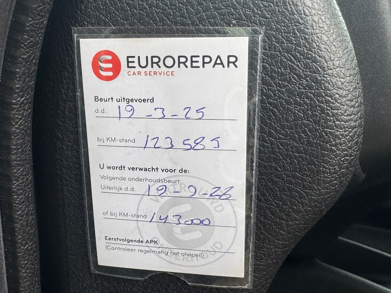 | APK | Bij aflevering |