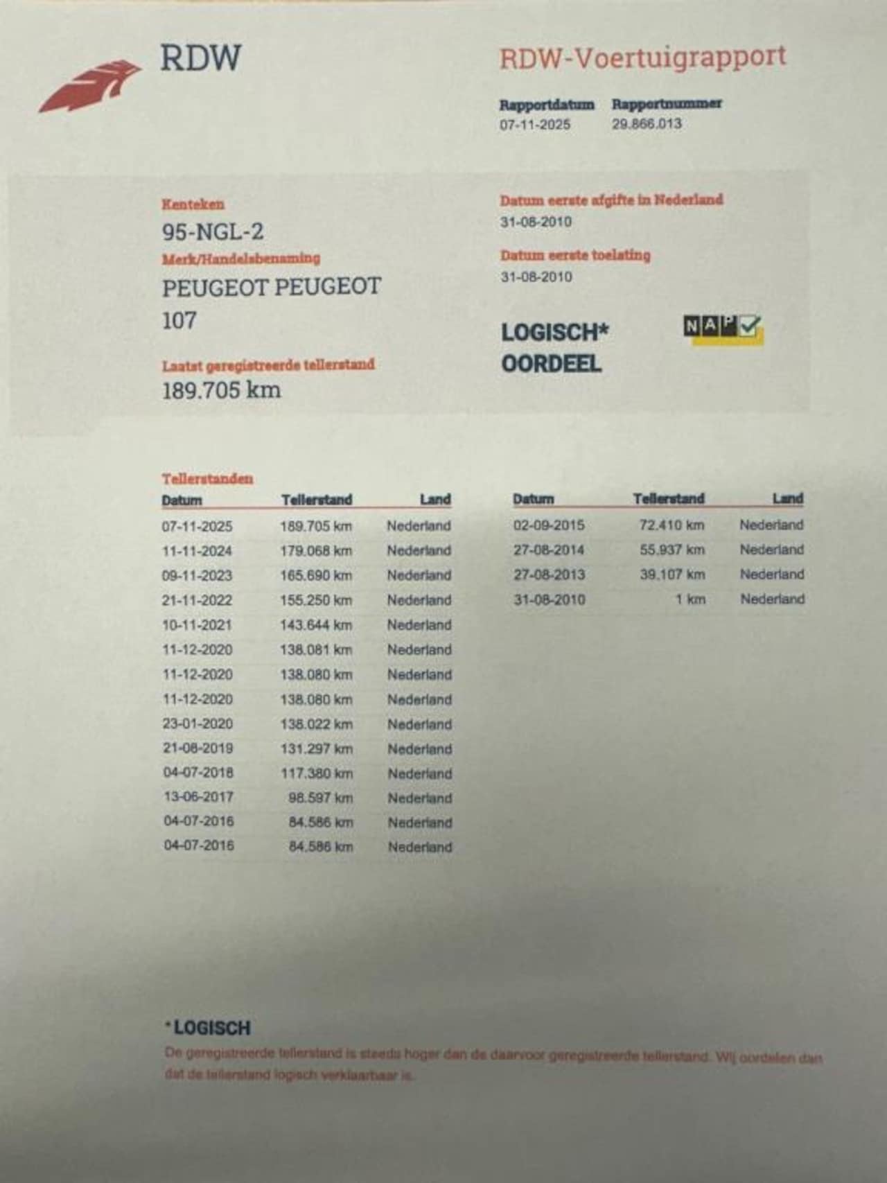 | Kilometerstand | 189.705 km |