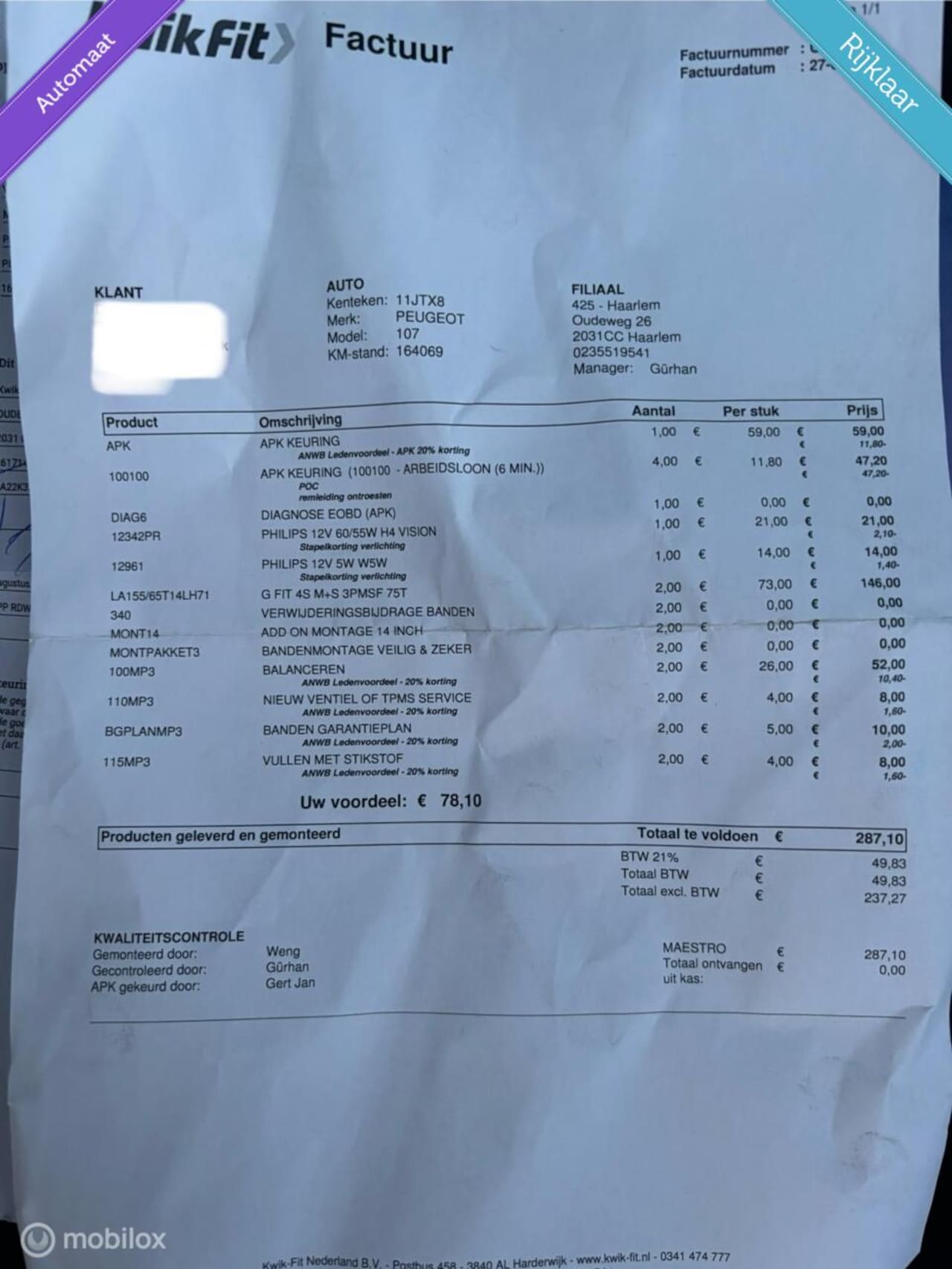| Kilometerstand | 167.286 km |