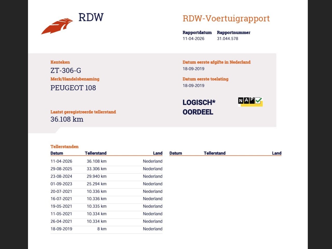 | Kilometerstand | 36.108 km |