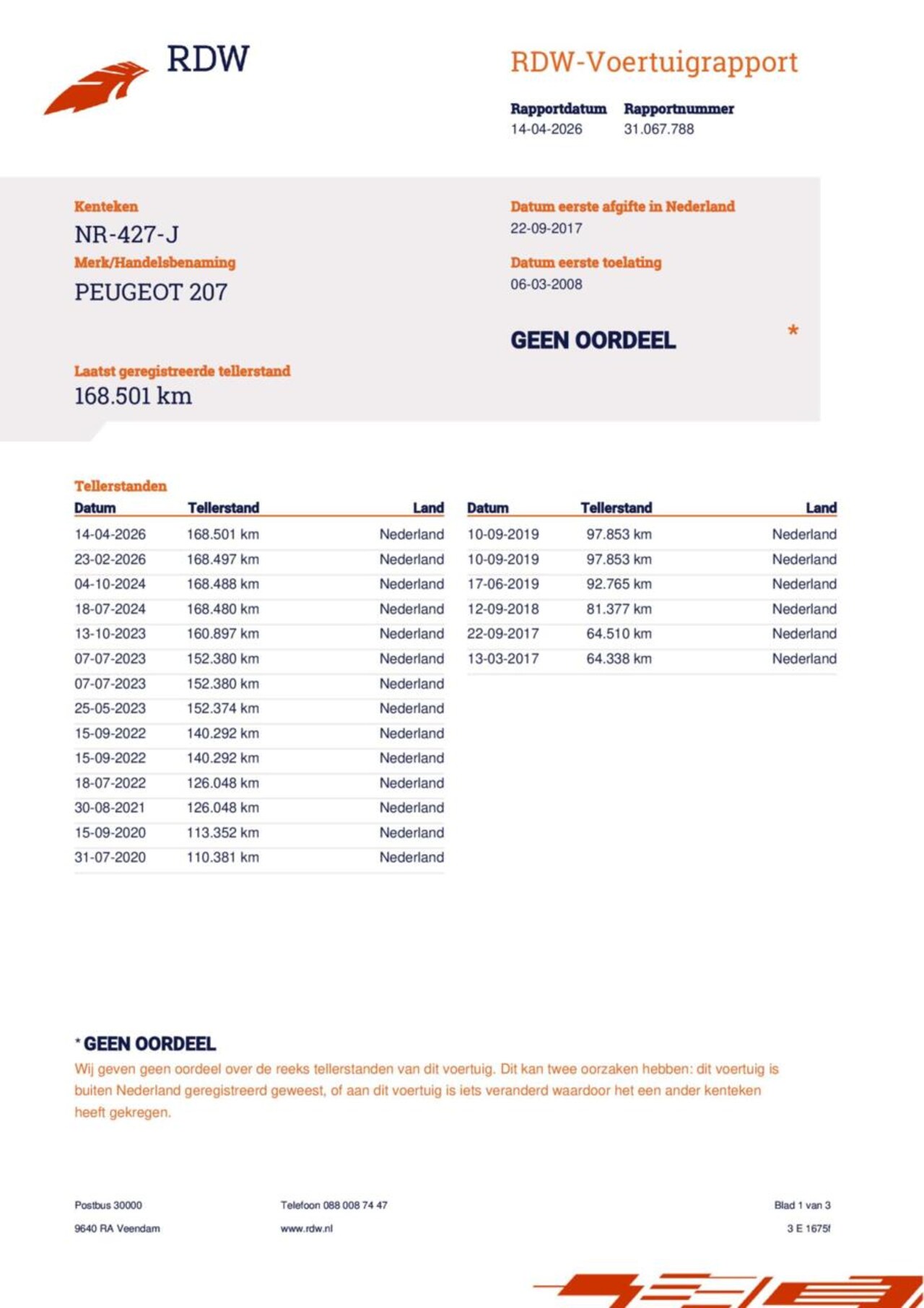 | Kilometerstand | 168.501 km |