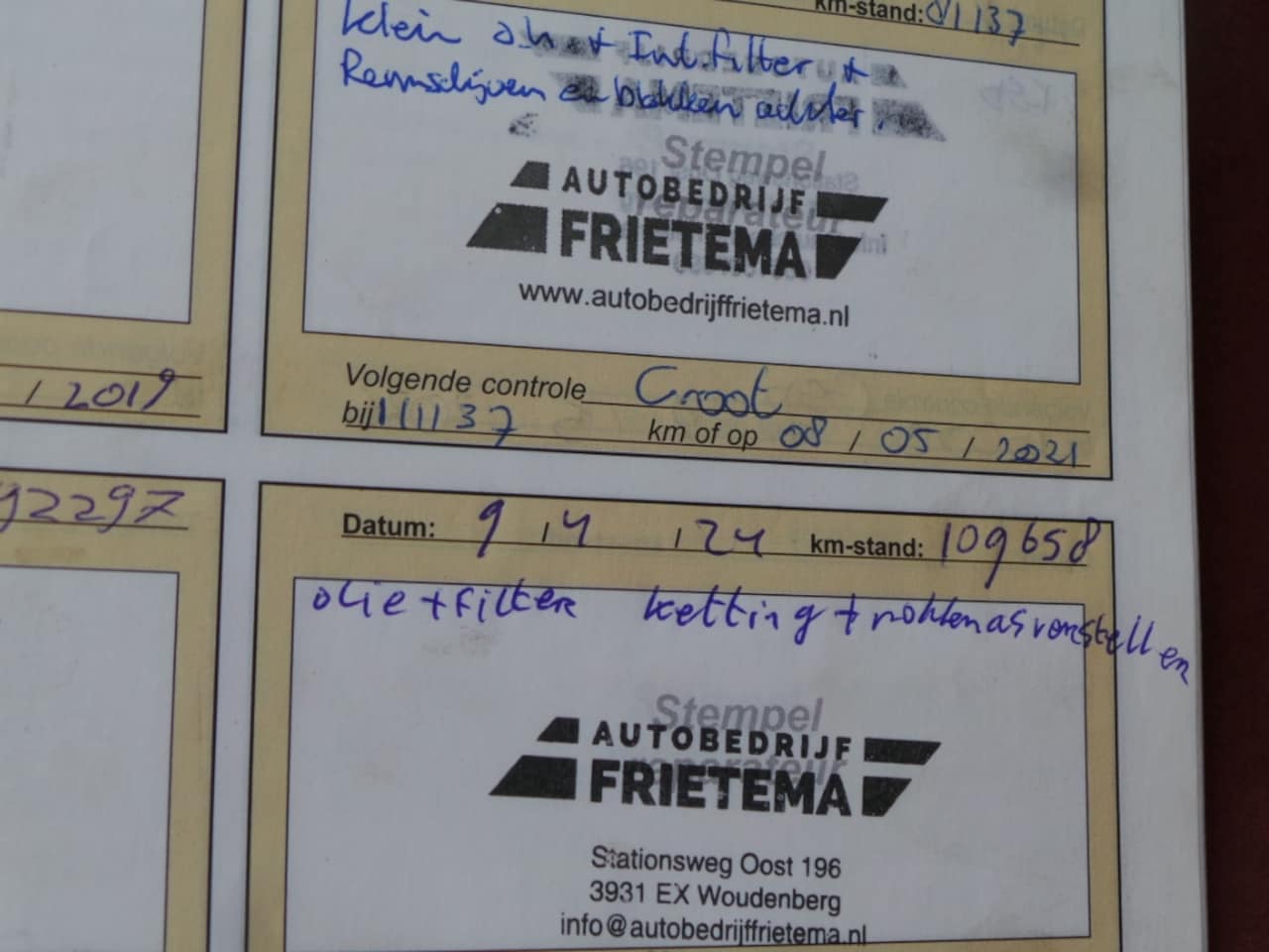 | APK | Bij aflevering |