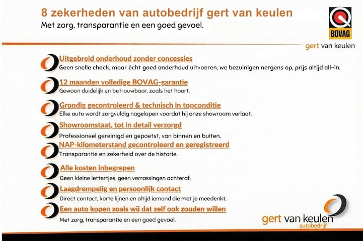 12 MAANDEN volledige BOVAG-garantie.
