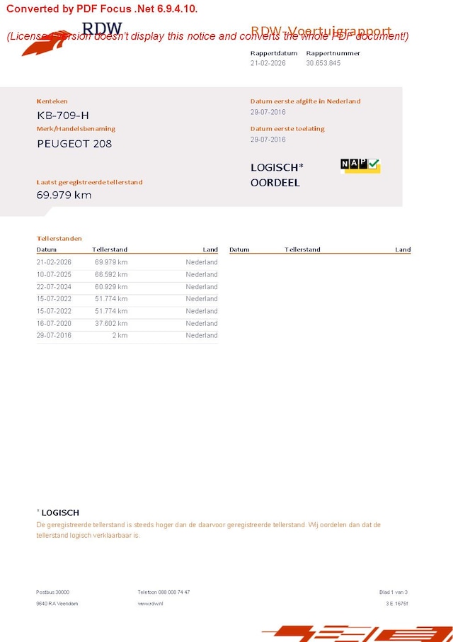 RDW Tellerrapport: https://voertuigrapportdownloaden.rdw.nl/kenteken/KB709H