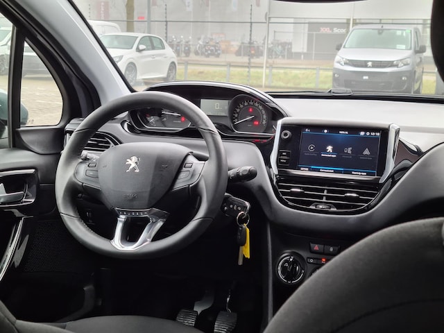 De 208 is voorzien van een groot Touch screen waarmee je de multimedia en navigatie bedient. Dat maakt van het dashboard een opgeruimd geheel, Linksonder het stuurwiel zit een extra hendel voor de cruise controle.