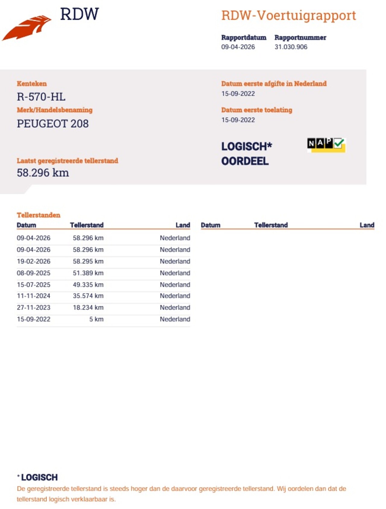 | Kilometerstand | 58.296 km |