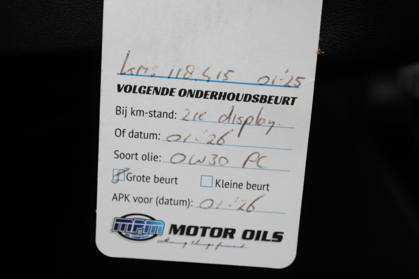 | APK | Bij aflevering |