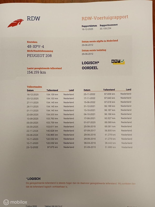 Voorzien van een NAP-logische kilometerstand van 154.159 km.
