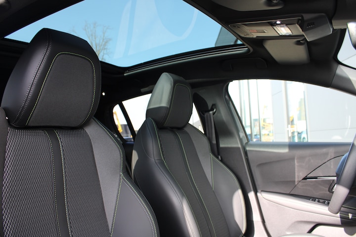 Dit noemen we een groentje met kilometers. Jongste generatie, inclusief alle voordelen. Maar de top is eraf, en dat scheelt! Het is vermeldenswaard dat deze auto maar 7168 kilometer heeft gereden sinds 2024. Rijden met deze Peugeot 208 is energiezuinig, want de hybride motor combineert brandstof met elektriciteit. Minder vaak langs de pomp, dus dat scheelt! Natuurlijk zijn de sportstoelen super functioneel als het rechterpedaal ingetrapt wordt. Maar ook voor het uiterlijk doen ze veel! Het interieur lijkt groter en ruimtelijker dankzij het glazen panoramadak. Natuurlijk behoren 17 inch lichtmetalen velgen, Full LED koplampen, trailer assistent, extra getint glas, in delen neerklapbare achterbank en LED-achterlichten ook tot de uitrusting van deze complete auto. Het digitale dashboard rekent mee, denkt mee en rijdt mee. Alle info overzichtelijk in beeld, overal. Alles vrij achter? De achteruitrijcamera laat het meteen zien. Onderweg kunt u veilig genieten van het audio-installatiesysteem met DAB-radio. Want in deze Peugeot bedient u het vanaf het stuurwiel of met gesproken opdrachten. Of het buiten nu warm is of koud, dankzij electronic climate control is het binnen altijd behaaglijk. De automatisch inschakelbare verlichting en regensensor zorgen dat onderweg automatisch de verlichting en de ruitenwissers worden ingeschakeld. Daarmee nemen ze u veel werk uit handen. Natuurlijk behoren cruise control, sportstuurwiel, keyless entry en automatisch dimmende binnenspiegel ook tot de uitrusting van deze complete auto. Tijdens de rit wordt u als bestuurder ondersteund door verschillende systemen die de weg en uw omgeving in de gaten houden. Bij de veiligheidssystemen van deze Peugeot hoort ook de verkeersbord-detectie. Die leest tijdens het rijden als het ware met u mee en attendeert u op de significante verkeersborden langs en boven de weg. Deze Peugeot 208 is ook behulpzaam als het gaat om een rechte koers. Het Lane-keeping systeem signaleert en corrigeert als u onbedoeld de rijstrooklijnen dreigt te overschrijden. Het systeem van forward collision warning, of in gewoon Nederlands 'botswaarschuwing', treedt in werking als de sensor te weinig afstand signaleert met een voor- of tegenligger. Met voorzieningen als hill hold functie, brake assist, vermoeidheidsherkenning en bandenspanningcontrolesysteem, bent u altijd veilig onderweg. Probeer deze auto uit en maak een proefrit. We zetten 'm graag voor u klaar!
