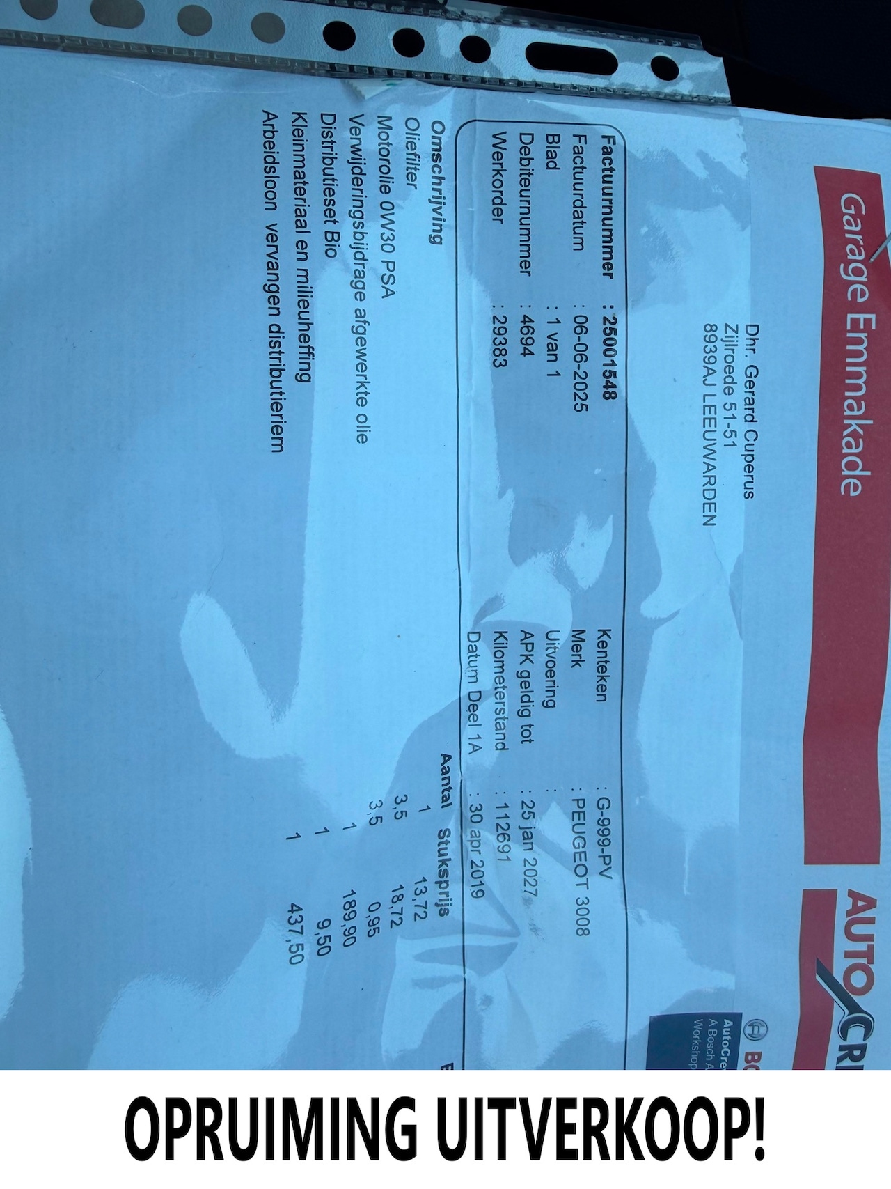 | APK | Bij aflevering |
