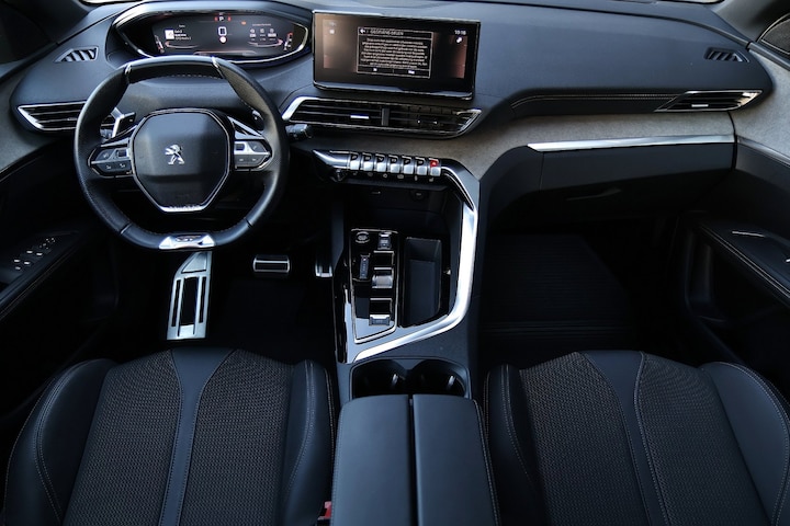 De automatische veiligheidssystemen in deze Peugeot fungeren als een extra paar ogen. En dat niet alleen, ze kunnen ook actief ingrijpen, om zo u en uw passagiers te beschermen. Recht voor u ziet u de weg én alle dashboardinformatie dankzij de head-up display Belangrijk voor uw veiligheid en die van uw passagiers is de verkeersbord-detectie in deze auto. Het Lane-keeping systeem registreert permanent of u binnen de lijnen van de rijstrook blijft; dwaalt u onbedoeld af, dan waarschuwt het systeem en corrigeert de koers. De veiligheid van deze auto wordt verder verhoogd door dodehoekdetectie, accident avoidance system, forward collision warning system, hill hold functie, vermoeidheidsherkenning en bandenspanningcontrolesysteem.