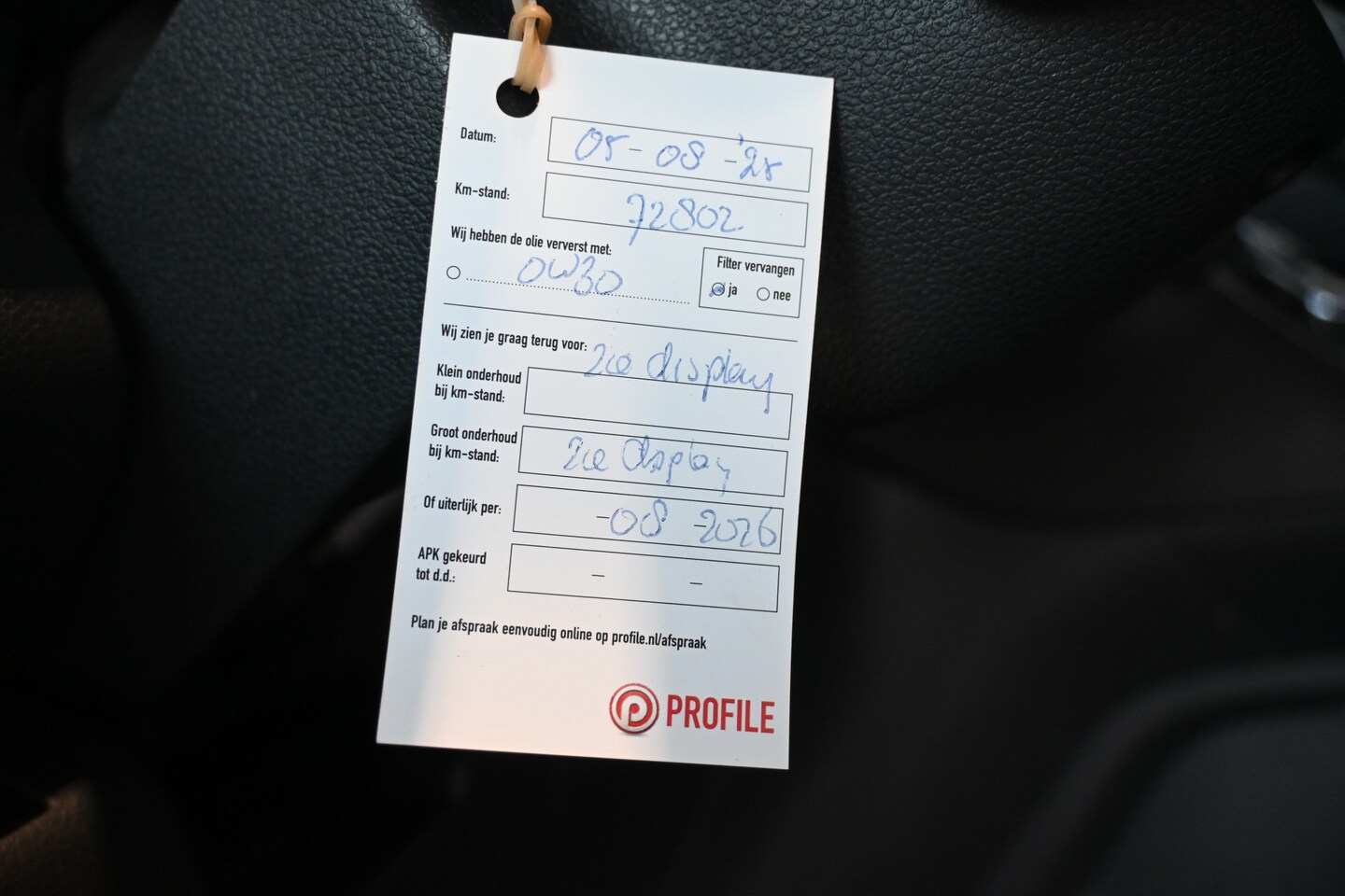 | APK | Bij aflevering |
