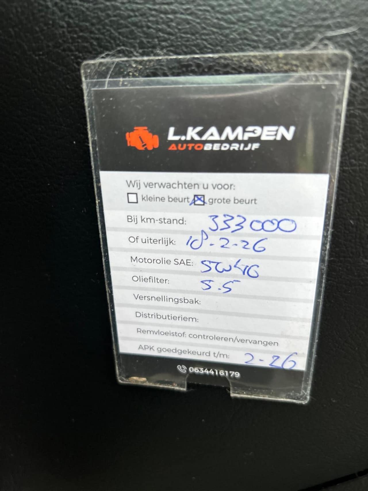 | APK | Bij aflevering |
