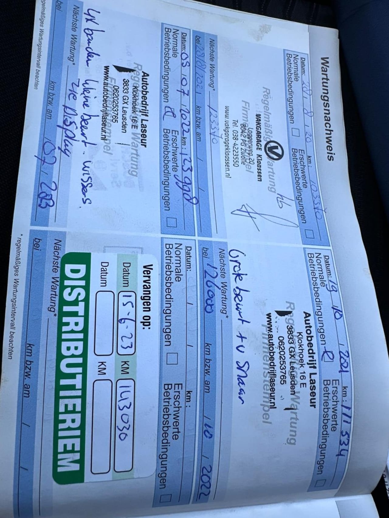 | APK | Bij aflevering |