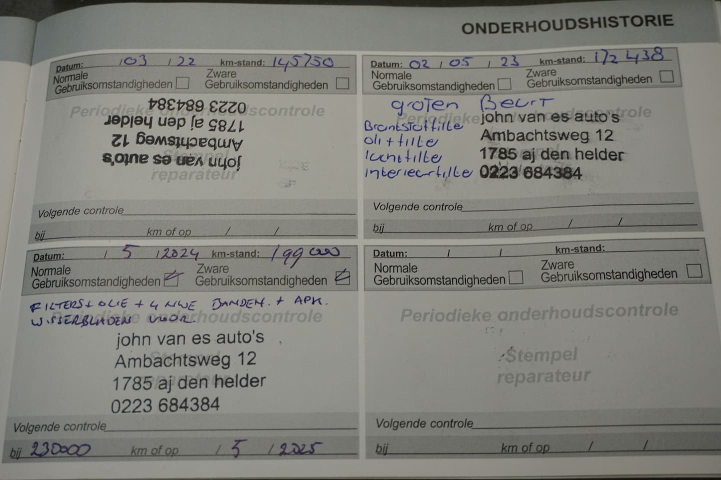 | APK | Bij aflevering |