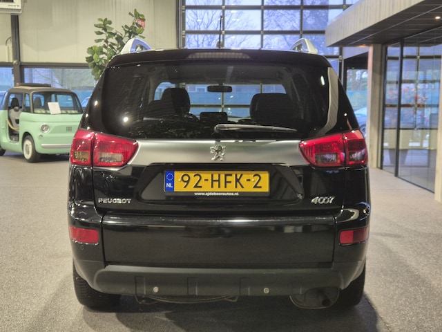 Rijden als nieuw? Dan is deze Peugeot 4007 een fantastische buitenkans. Prille cijfers op de teller, piepjong ogend, verbluffend actueel in extra's en opties... Deze Peugeot 4007 heeft het allemaal! De aandrijving van deze Peugeot wordt verzorgd door een viercilinder benzinemotor en een handgeschakelde zesversnellingsbak. De vierwielaandrijving is niet alleen heel prettig op onverharde wegen en nat wegdek, maar ook als je de bergen in gaat, bijvoorbeeld op wintersport. Het met leer beklede interieur is comfortabel en stijlvol. Op zelfs de koudste ochtend biedt de stoelverwarming een heerlijk welkom. Xenonverlichting zorgt in het donker voor beter zicht. Bij de uitrusting van deze Peugeot horen onder meer 18 inch lichtmetalen velgen, dakrails, getint glas en bumpers in carrosseriekleur.