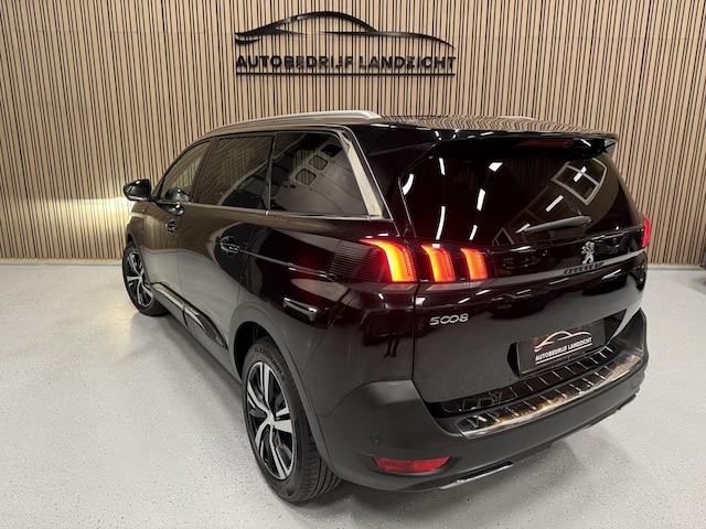 Peugeot 5008 1.6 GT Line (2018) automaat met 165 pk. Luxe en ruime 7-persoons SUV, voorzien van panoramadak, navigatie, achteruitrijcamera en lederen interieur. Comfortabel, sportief en rijk uitgerust.
