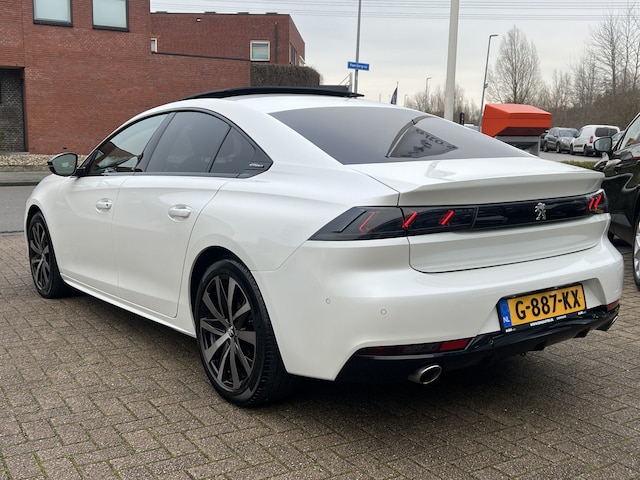 Een keurig nette zeer complete 508 GT-Line 1.6 Turbo 180 pk met 8-traps Automaat en mooie opties in de kleur "Blanc Nacre" metallic / Parelmoerlak.