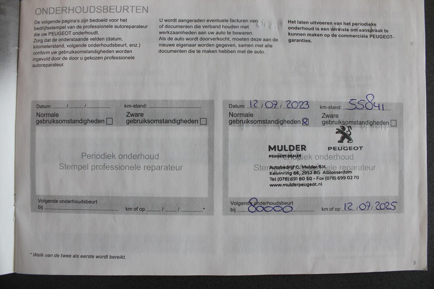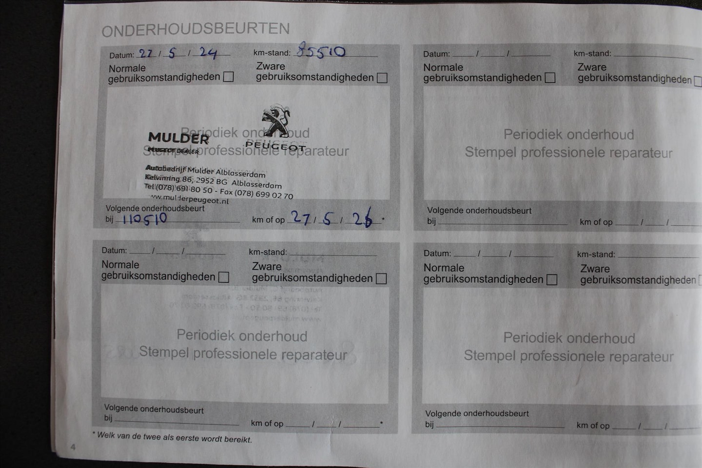 | APK | Bij aflevering |