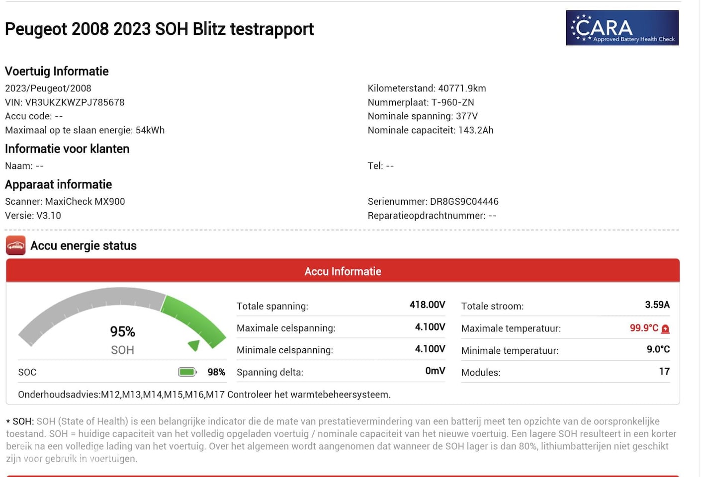 EV GT 54 kWh SOH 95%