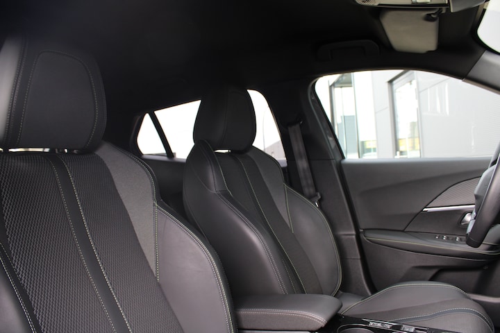 Qua technologie en innovatie is Peugeot echt een koploper. Dat betekent ook meer veiligheid, zuinig rijden en een vooruitstrevend ontwerp. Kortom: Motion & Emotion! Ervaar de kracht en stilte van de elektromotor tijdens het rijden. Een krachtige motor geeft deze auto zijn sportieve prestaties. De sportstoelen zorgen voor een strak uiterlijk én een uitstekende zitsteun. Bij de uitrusting van deze auto horen onder meer 17 inch lichtmetalen velgen, Full LED koplampen, dakspoiler, extra getint glas, in delen neerklapbare achterbank en LED-achterlichten. Omdat goed geïnformeerd rijden tegenwoordig om veel meer draait dan alleen snelheid en brandstofpeil, laat het digitale dashboard alle functies zien die u nodig heeft. Met de achteruitrijcamera ziet u wat er achter de auto gebeurt. Zo rijdt u moeiteloos achteruit. Met adaptive cruise control houdt de auto zelfstandig afstand tot uw voorligger. Een veiligheidsverhogende optie waarmee u comfortabel onderweg bent. Veilig en comfortabel rijden wordt nog eens versterkt door Connected Services, zodat u diverse vitale functies van de auto altijd kunt checken in de app. Met spraakbediening of de knoppen op het stuur regelt u het audiosysteem en het full map navigatiesysteem, terwijl u uw blik op de weg gericht houdt. De audio-installatie biedt daarbij glasheldere ontvangst dankzij DAB-ontvangst. De uitrusting van deze Peugeot is met automatische airconditioning, draadloos opladen, regensensor, sportstuurwiel, keyless entry en automatisch dimmende binnenspiegel behoorlijk compleet. Deze auto is voorzien van innovatieve systemen die u onderweg begeleiden en beschermen. Belangrijk voor uw veiligheid en die van uw passagiers is de verkeersbord-detectie in deze auto. Het Lane-keeping systeem garandeert dat u zich niet onverhoeds buiten de lijnen van de rijstrook begeeft. Vermoeidsheidsherkenning herkent tekenen van vermoeidheid bij de bestuurder. Het systeem voorkomt dat er ongelukken gebeuren doordat de bestuurder in slaap valt. In deze Peugeot vinden we verder een hill hold functie, autonoom remsysteem en bandenspanningcontrolesysteem. Dit is het moment om te switchen naar elektrisch rijden. Gaat u mee? Bel nu voor een afspraak en maak een proefrit!