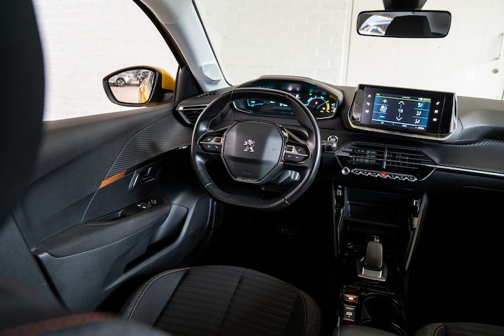Kijk naar de zelfbewuste vormgeving. Ontdek de vernieuwende technologie aan boord. De Peugeot e-208 is een unieke elektrische auto. U kunt ervoor kiezen vanwege het milieu. Maar de elektromotor biedt ook power en prestaties! Bij de uitrusting van deze Peugeot horen onder meer 16 inch lichtmetalen velgen, LED-dagrijverlichting, in delen neerklapbare achterbank en LED-achterlichten. Rijfuncties worden glashelder en overzichtelijk weergegeven via het digitale dashboard. Hoe is het met de banden, de accu en andere onderdelen? Connected Services maakt het inzichtelijk, 24/7 via de app. U kunt het audiosysteem bedienen met de knoppen op het stuur of zelf met uw stem. Het spreekt voor zich dat een auto als deze ook van automatische airconditioning is voorzien. Een plekje vinden in de binnenstad is één, inparkeren is twee. Voor dat laatste heeft deze Peugeot e-208 prima parkeersensoren die u een handje helpen. De uitrusting van deze auto is met regensensor, cruise control, automatisch dimmende binnenspiegel, lederen stuur en centrale deurvergrendeling met afstandsbediening behoorlijk compleet. Zoals u mag verwachten van deze Peugeot e-208 is hij uitgerust met een reeks aan actieve veiligheidssystemen. Bij de veiligheidssystemen van deze Peugeot hoort ook de verkeersbord-detectie. Die leest tijdens het rijden als het ware met u mee en attendeert u op de significante verkeersborden langs en boven de weg. Het Lane-keeping systeem registreert permanent of u binnen de lijnen van de rijstrook blijft; dwaalt u onbedoeld af, dan waarschuwt het systeem en corrigeert de koers. De sensor van het forward collision warning-systeem registreert permanent de afstand tot voorliggers en grijpt in als een botsing dreigt. Met voorzieningen als vermoeidheidsherkenning, autonoom remsysteem en bandenspanningcontrolesysteem, bent u altijd veilig onderweg. Wanneer wilt u een proefrit maken? Neem contact op en we maken een afspraak voor een muisstille rit in deze elektrische droomauto!