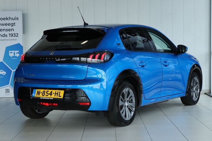 Hightech elektronica en emissievrij rijden komen samen in de Peugeot e-208. Deze auto biedt een onvergelijkbare rijbeleving dankzij de volledig elektrische aandrijflijn. Gas geven is er met de elektromotor niet meer bij. Stil snelheid maken wel! Donkere en koude maanden? U zit altijd goed dankzij de stoelverwarming. Ook 16 inch lichtmetalen velgen, LED koplampen, extra getint glas, in delen neerklapbare achterbank en LED-achterlichten zijn aan boord. Soepel inparkeren gaat gemakkelijker dan u verwacht dankzij de achteruitrijcamera. Dankzij Connected Services heeft u overal en altijd uw dashboard op zak. Alle belangrijke functies zijn te checken via de app. Deze Peugeot is voorzien van knoppen op het stuur om het audiosysteem met dab-ontvangst te bedienen. Automatische airconditioning verwarmt of koelt het interieur met een druk op de knop. Natuurlijk is een complete auto als deze ook voorzien van sensoren die de omgeving in de gaten houden. Deze Peugeot heeft niet alleen een automatisch inschakelbare verlichting aan boord, maar ook een regensensor. De uitrusting van deze auto is met cruise control, automatisch dimmende binnenspiegel, lederen stuur en centrale deurvergrendeling met afstandsbediening behoorlijk compleet. Zoals u mag verwachten van deze Peugeot e-208 is hij uitgerust met een reeks aan actieve veiligheidssystemen. De camera van de verkeersborddetectie herkent verschillende soorten verkeersborden en toont deze op het dashboard. Het Lane-keeping systeem let constant op en waarschuwt of corrigeert als u onoplettend over de lijnen van de rijstrook gaat. Ook als uw aandacht even verslapt, blijft de forward collision warning bij de wekker. Dreigt er een botsing met een voor- of tegenligger, dan waarschuwt het systeem direct. Verder is deze auto uitgerust met vermoeidheidsherkenning, autonoom remsysteem en bandenspanningcontrolesysteem. Elektrisch rijden is een ervaring op zich. Bel ons voor een afspraak en maak een proefrit!