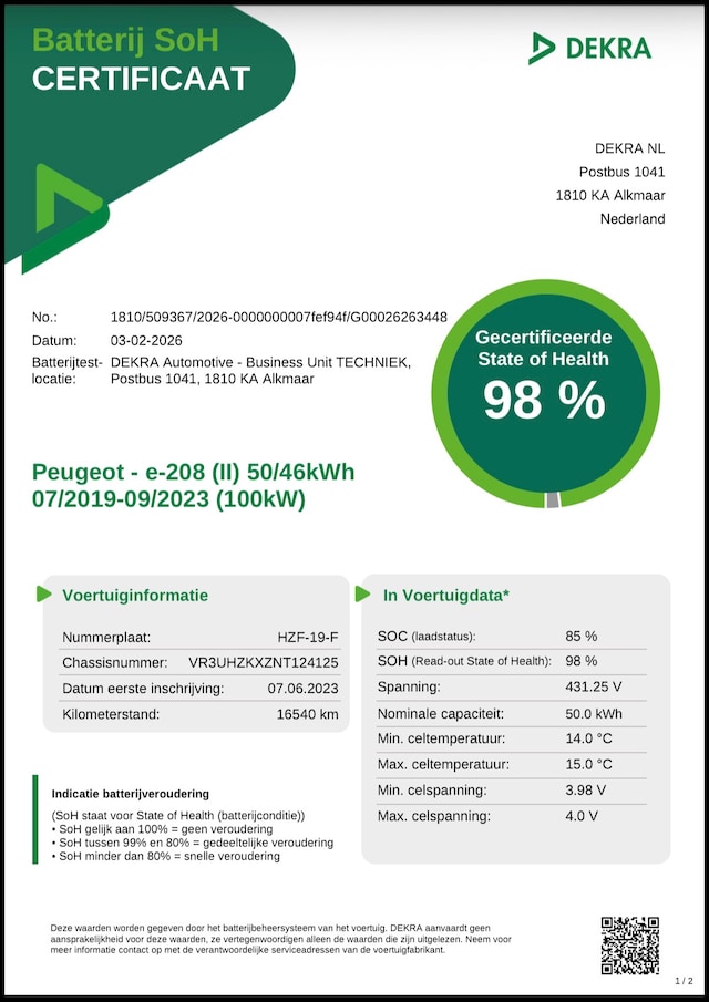 Accu: 50 kWh, Conditie: 100%, Type lithium-ion