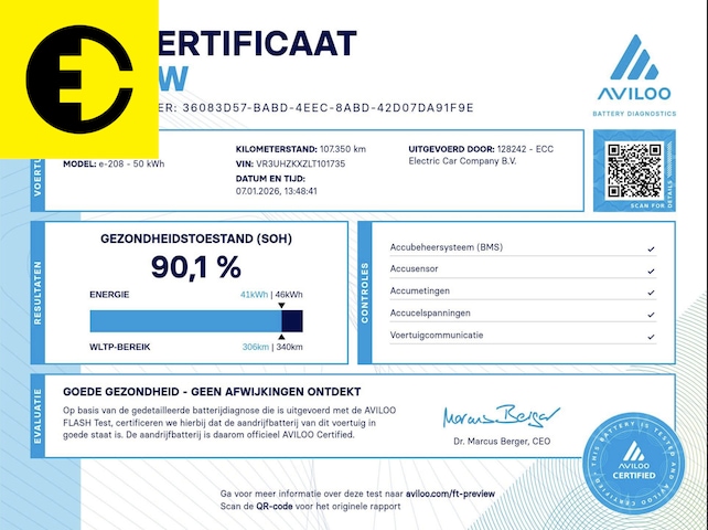 De accu heeft een fabrieksgarantie voor acht jaar of 160.000km voor zeventig procent van de laadcapaciteit bij Peugeot.