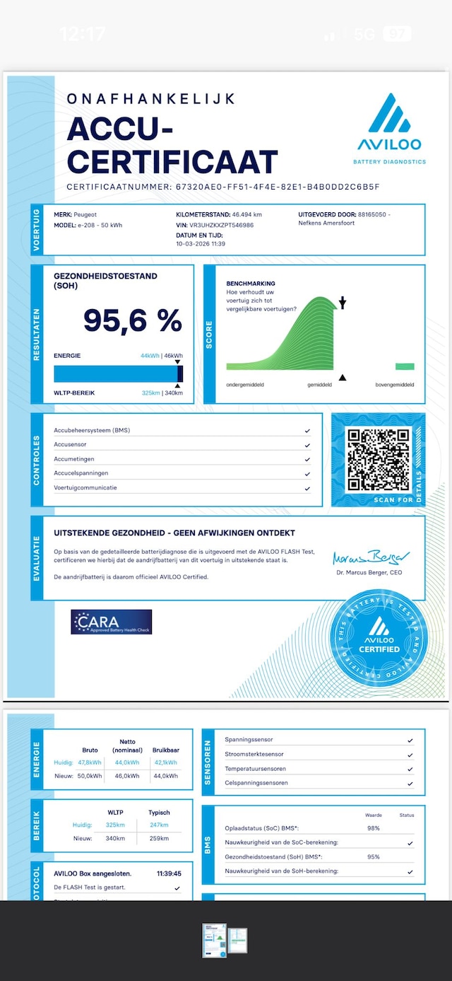 - Voor EV-modellen: Batterij gezondheidstoestand test