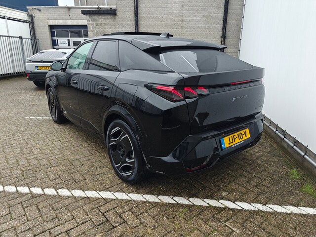 De acceleratie van de elektrische Peugeot e-3008 is indrukwekkend. Dit exemplaar heeft 9850 kilometer gelopen, het bouwjaar is 2025. De fluisterstille elektromotor zorgt voor pittige rijprestaties zonder uitstoot. Maar wel met fiscaal voordeel! De krachtige motor geeft deze Peugeot uitstekende prestaties. Het lederen interieur geeft deze auto luxe en klasse. Hoe luxueus is het om tijdens de winter een verwarmde auto te hebben door de stuurverwarming, stoelverwarming met massagefunctie en verwarmbare achterbank. Het interieur lijkt groter en ruimtelijker dankzij het elektrisch bedienbare glazen panoramadak. De bagageruimte is toegankelijk via een comfortverhogende elektrische achterklep. De koplampen zijn voorzien van matrix LED-verlichting waarmee u aanzienlijk verder kan kijken in het donker. Het systeem past zelf de lichtstraal aan op het moment tegenliggers verblind kunnen worden. In deze auto profiteert u onder andere ook van: 20 inch lichtmetalen velgen, geluidsisolerende ramen, dakspoiler, in delen neerklapbare achterbank, LED-achterlichten en verstelbare lendensteunen. Met de 360 graden camera op deze auto wordt parkeren in smalle parkeerplekken een makkie dankzij het optimale zicht dat het apparaat levert. Adaptive cruise control is veilig en comfortabel. De snelheidsregelaar houdt automatisch afstand tot het voertuig dat voor u rijdt. Wat is de onderhoudsstatus van deze auto? U checkt het snel, simpel en overal via uw smartphone. Als belangrijke extra geldt zonder twijfel het high performance audiosysteem met topkwaliteit geluidsweergave. Moet uw smartphone ook even tanken? Bijladen kan supersimpel met de draadloze telefoonlader. Ook dashboard met spraakbediening, navigatiesysteem, electronic climate control, DAB ontvangst, regensensor en keyless entry zijn aan boord. Het zal u verbazen hoe deze auto in staat is om voor u de omgeving en het verkeer om u heen in de gaten te houden. Blijf voor u kijken, terwijl u de rij-informatie afleest op uw voorruit. Daarvoor zorgt de head-up display! Dat de auto steeds meer taken van de bestuurder overneemt, merkt u bijvoorbeeld aan het systeem voor verkeersbord-detectie in deze auto. Ongemerkt buiten de rijstrook raken? Nee hoor, het Lane-keeping systeem waarschuwt en corrigeert. U bent mede dankzij dodehoekdetectie, hill hold functie, vermoeidheidsherkenning, autonoom remsysteem en bandenspanningcontrolesysteem steeds veilig onderweg. Een proefrit? Natuurlijk! Neem contact op en we maken een afspraak om u te overtuigen van deze kwaliteitsauto!