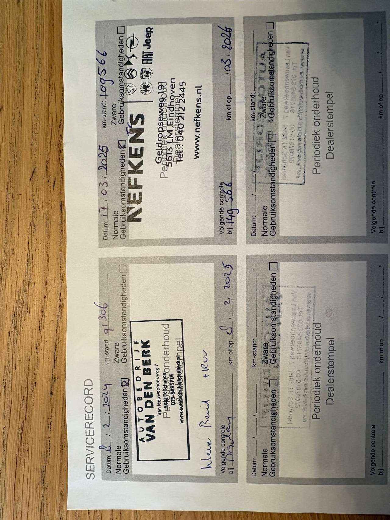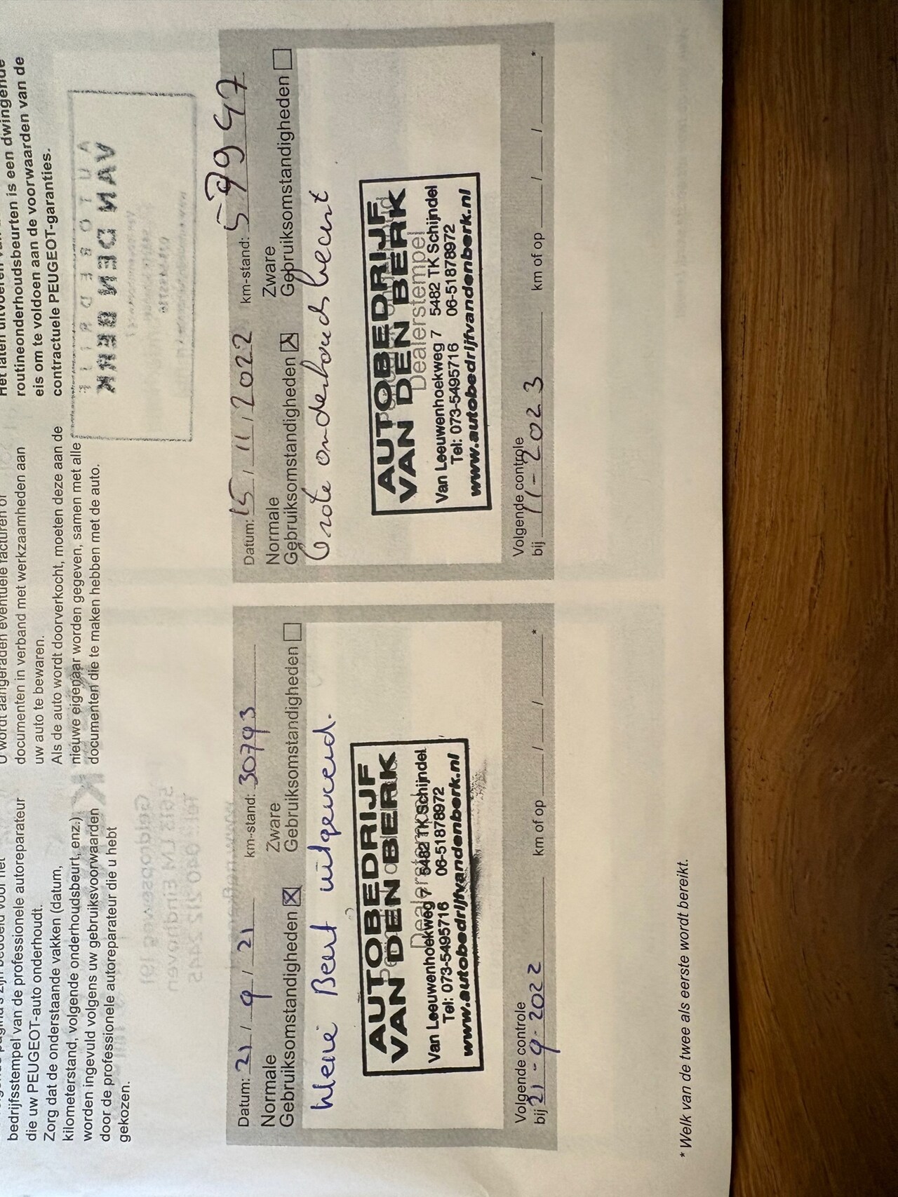 | APK | Bij aflevering |