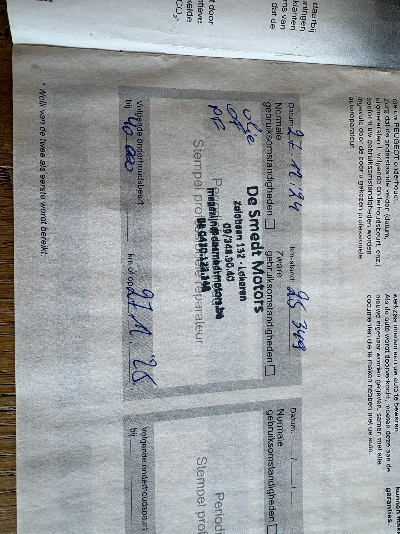 | APK | Bij aflevering |