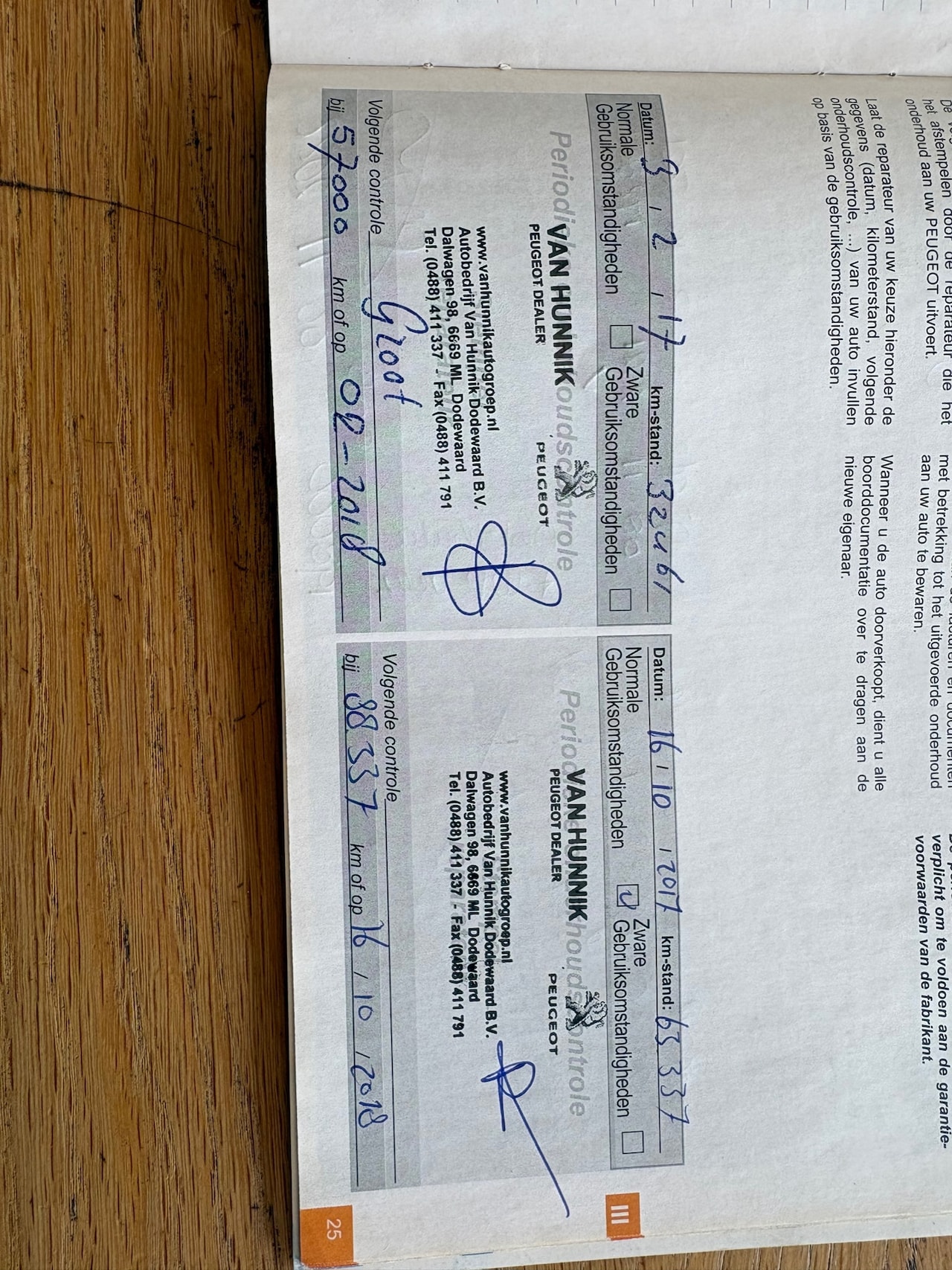 | APK | Bij aflevering |