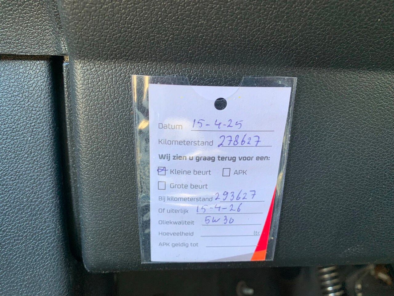 | APK | Bij aflevering |