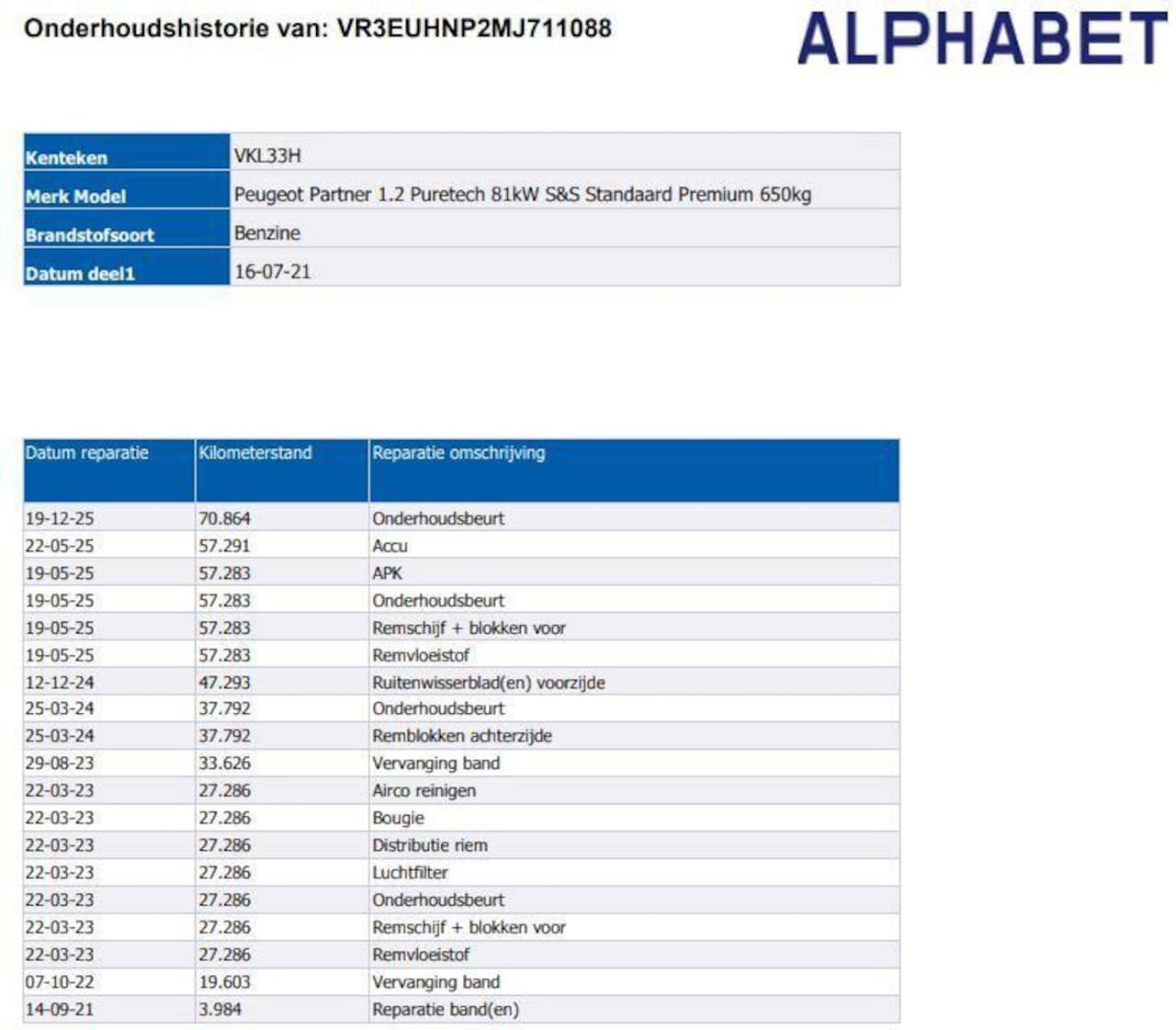 bestel 1.2 Premium | Distributie vervangen |