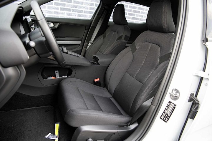 Interieur: Embossed textile seats charcoal with 3d etched deco, Stof