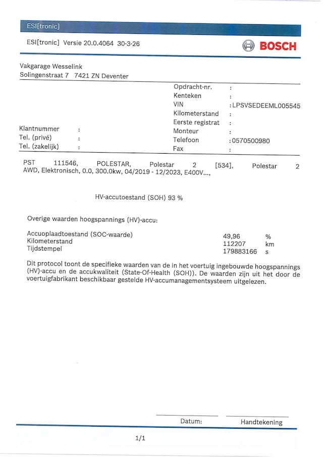 Accu: 78 kWh, Conditie: 93%, Type lithium-ion