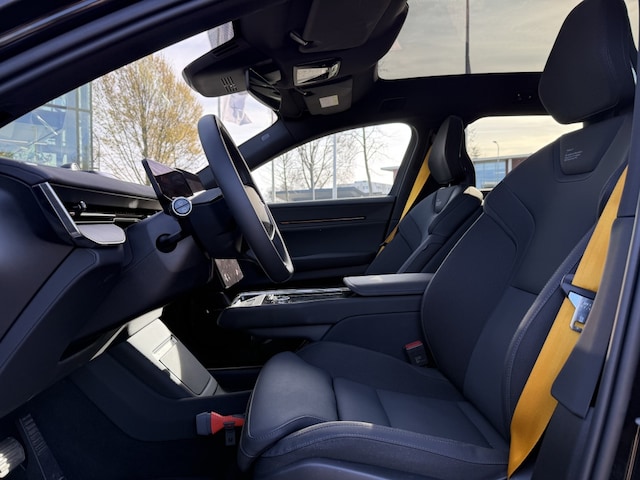 Het interieur van de Polestar 3 is uitgerust met luxe opties die zorgen voor optimaal comfort en gemak. Zo beschikt de auto over elektrisch verstelbare stoelen met geheugenfunctie, waardoor je altijd jouw favoriete zitpositie kunt vinden. De luchtvering zorgt voor een soepele en comfortabele rijervaring, terwijl het head-up display ervoor zorgt dat alle belangrijke informatie direct in jouw zichtveld wordt geprojecteerd.