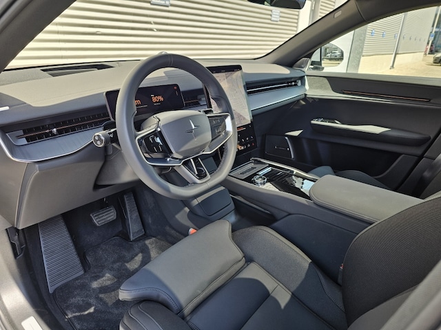 Het exterieur van deze Polestar 3 is uitgevoerd in een opvallende magnesium metallic lak, wat zorgt voor een moderne en elegante uitstraling. De 21 inch Plus velgen geven de SUV een robuuste look, terwijl het extra getinte glas zorgt voor een vleugje mysterie en privacy.
