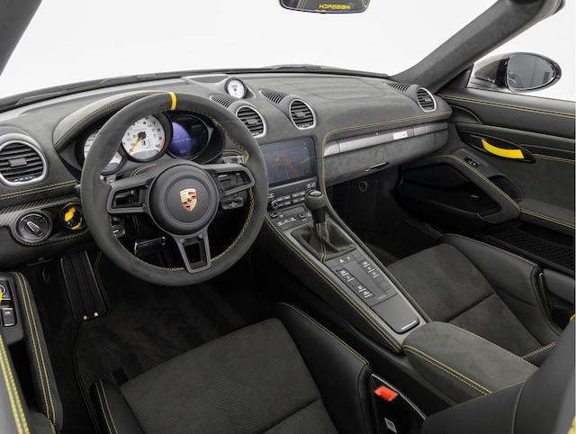 Deze Porsche 718 Spyder RS in de kleur Zwart is nog nieuw en ongeregistreerd. De Porsche onderscheidt zich onder andere door unieke opties, zoals; Weissach-pakket, Porsche Ceramic Composite Brake (PCCB), Eindafwerking dashboard leder/Race-Tex en het Sport Chrono Pakket. Uiteraard is dit exemplaar nog verder te verfraaien door hoogwaardige accessoires van Porsche Tequipement.