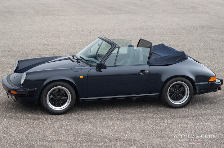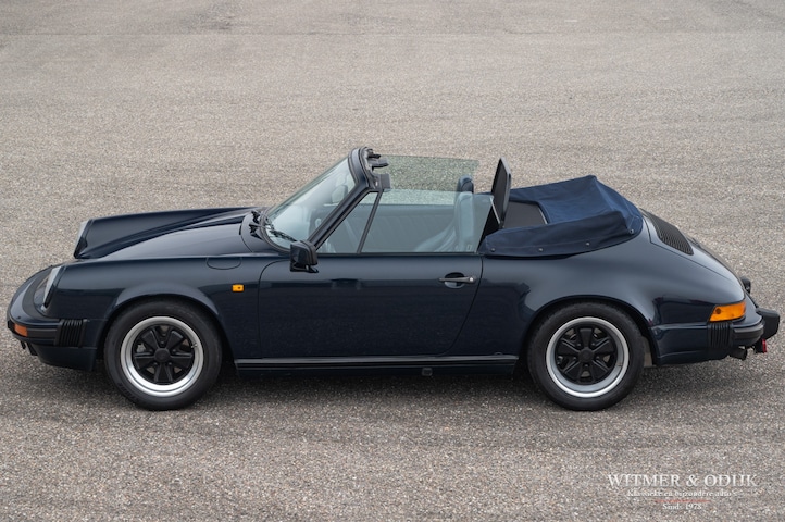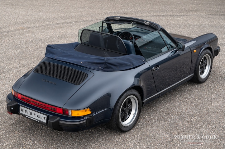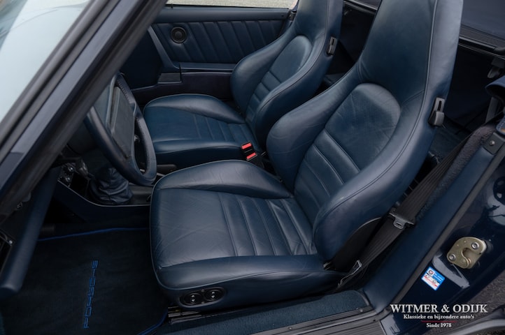 Misschien wel de ultieme klassieke 911, de 3.2 Carrera serie in de bijzonder fraaie cabriolet uitvoering. Net voordat Porsche enkele jaren later besluit het model bijna volledig te herzien ziet deze Carrera Cabriolet het levenslicht. Dit nadat men in Stuttgart inmiddels meer dan vijfentwintig jaar had gewerkt aan de perfectionering van de 911. Met de kap open de mooiste autobeleving op aarde…het karakteristieke motorgeluid achterin, de precieze besturing en het indrukwekkende koppel wat u open rijdend aanzienlijk beter ervaart dan gesloten. Weinig auto's bieden zoveel plezier en zijn ook nog eens géén dief van uw portemonnee. Want als er iets waardevast is dan is het wel een luchtgekoelde Porsche. De relatief zeldzame cabriolet, uit een van de meest geliefde series 911, is dan het mooiste bezit. Het hier aangeboden exemplaar voldoet aan alle voorwaarden waar een verantwoorde investering aan moet voldoen. Deze 911 3.2 Carrera is origineel en schadevrij, bijzonder fraai in de foutloze diep donkerblauwe lak, keurige onbeschadigde cabriokap die zich volledig elektrisch laat bedienen en voorzien van 16 inch Fuchs velgen met uitstekende Bridgestone banden. Optioneel zijn verder nog elektrische stoelbediening en aircoconditioning aanwezig De carrosserie is echt roestvrij en geheel onbeschadigd, zelfs geen steenslag op te vinden. Uitstekend rijdend, soepel schakelend en een motor waar geen oliedruppels aan hangen. Compleet onderhoudsdossier en origineel serviceboekje aanwezig, zeer goed onderhouden. Ook deze 911 leveren wij rijklaar af inclusief nieuwe APK, garantie en onderhoudsbeurt.
