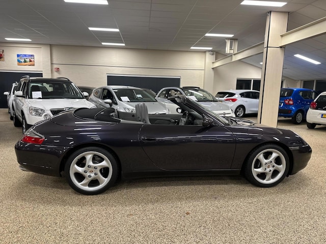 Deze Porsche 911 Cabrio komt uit 1999, werd geleverd van 09-05-1998 tot 01-08-2001 en kostte toen € 150.206,-. Deze geïmporteerde personenauto staat sinds 2000 op kenteken, is voorzien van een benzine-motor, heeft een maximum vermogen van 221 kW (300 PK) en een cilinderinhoud van 3387 cc. De personenauto heeft een topsnelheid van 280 km per uur en bereikt vanuit stilstand de 100 km/u in 5,4 seconden. Het verbruik van deze personenauto is gemiddeld 11,8 liter per 100 km en hij weegt 1370 kg. De APK is geldig tot 24-09-2024 en de wegenbelasting bedraagt gemiddeld € 225,- per kwartaal.
